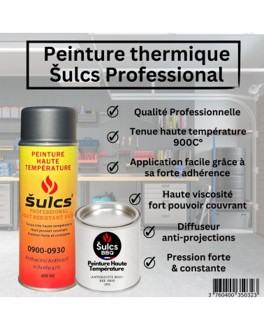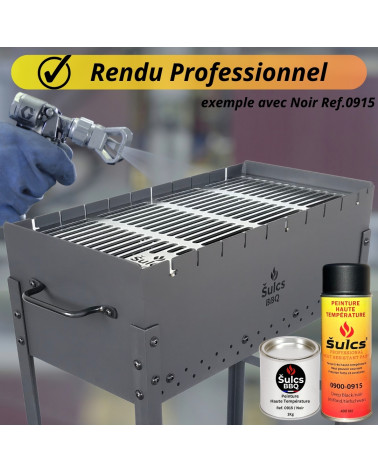 Peinture professionnelle haute température conditionnée en pot d'1Kg, idéale pour la rénovation de votre barbecue, votre insert de cheminée ou tout autre support nécessitant une résistance aux températures élevées, de plus, cette peinture de grande qualité est de fabrication européenne.