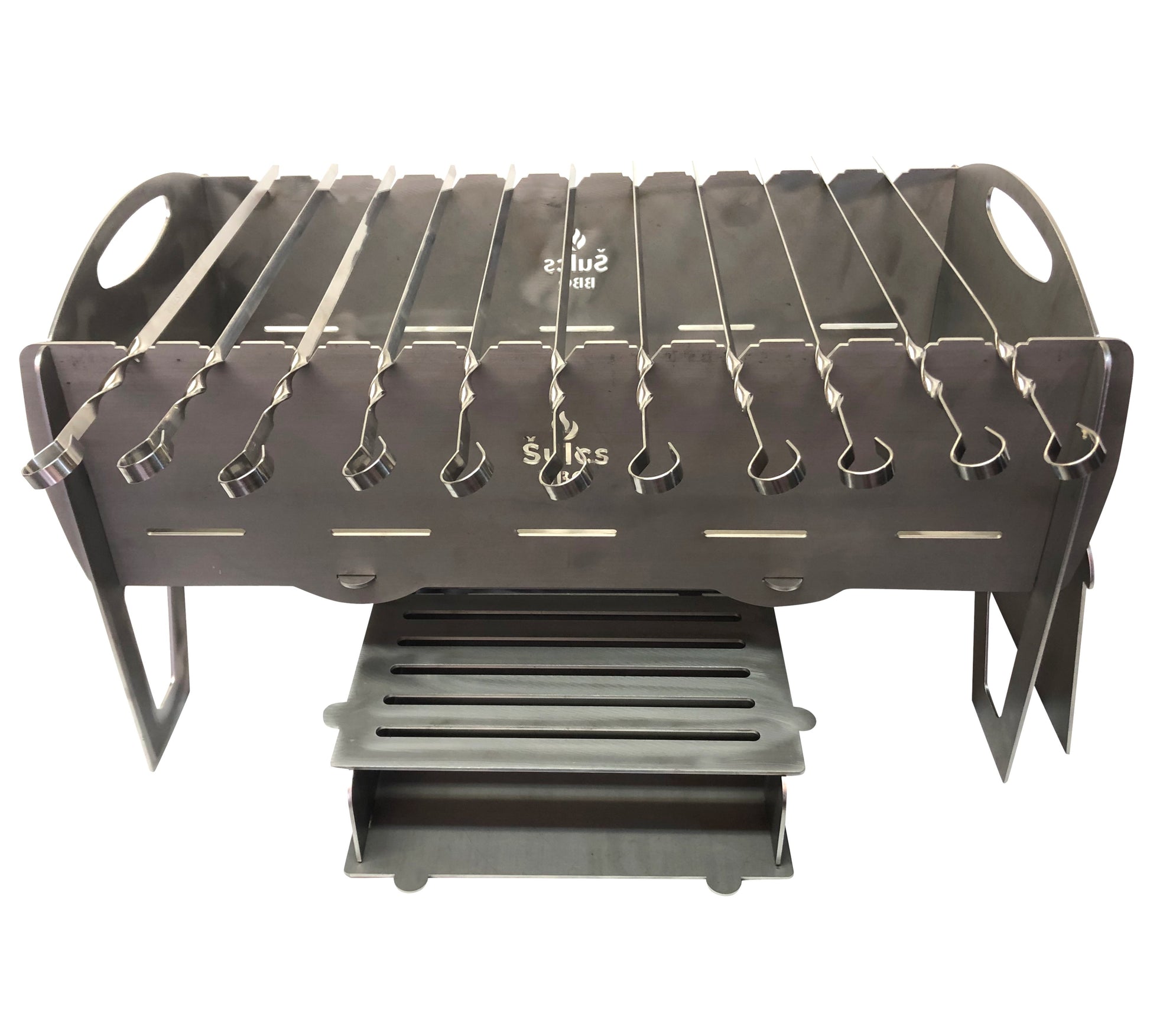 Le barbecue est fourni avec 10 brochettes inox de 50 cm, ce qui vous permettra de profiter des 30 cm de cuisson par brochette qu'offre ce modèle.