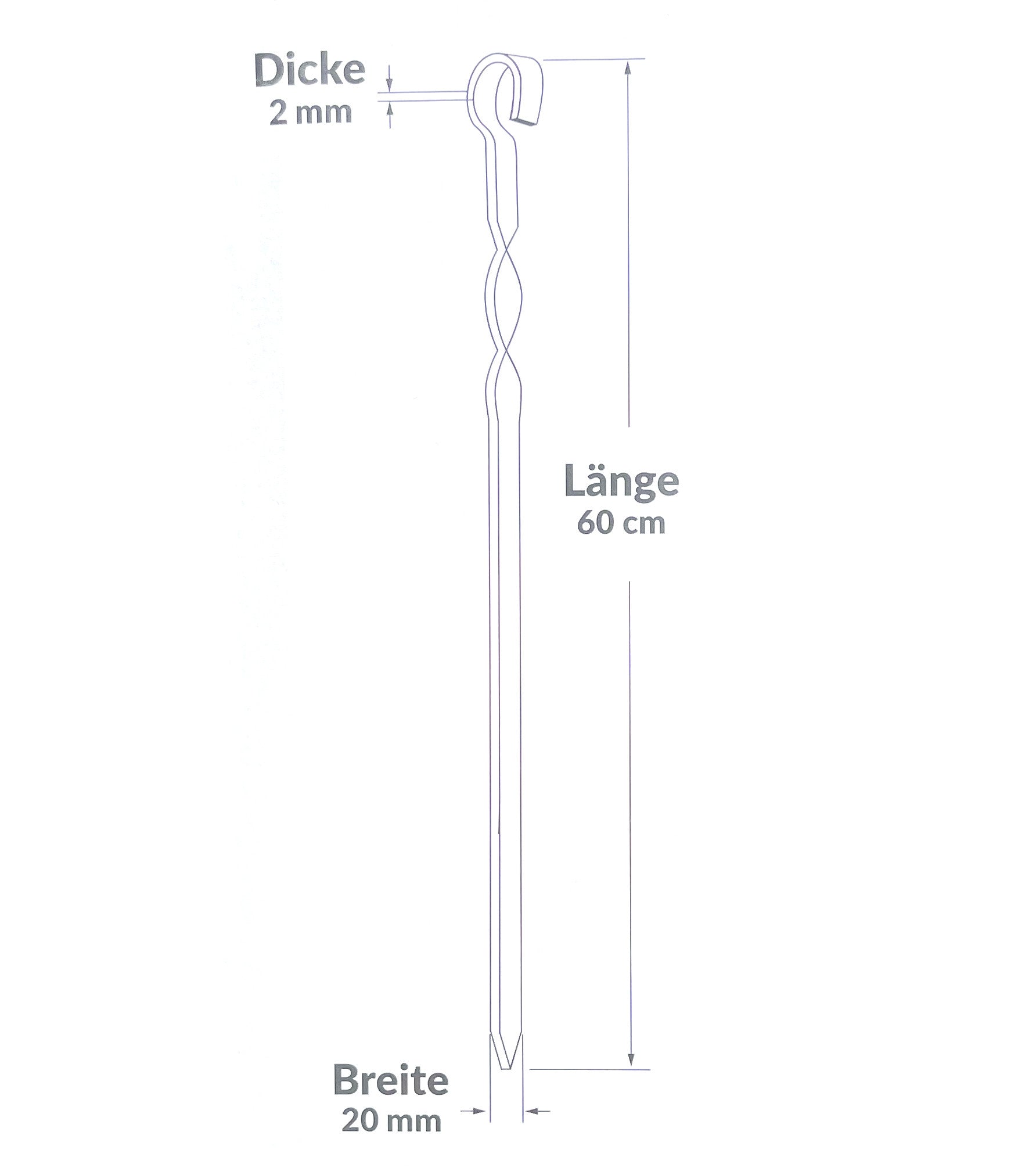 Longueur totale de 60 cm, longueur effective de cuisson 44cm, épaisseur 2 mm, largeur 20mm.